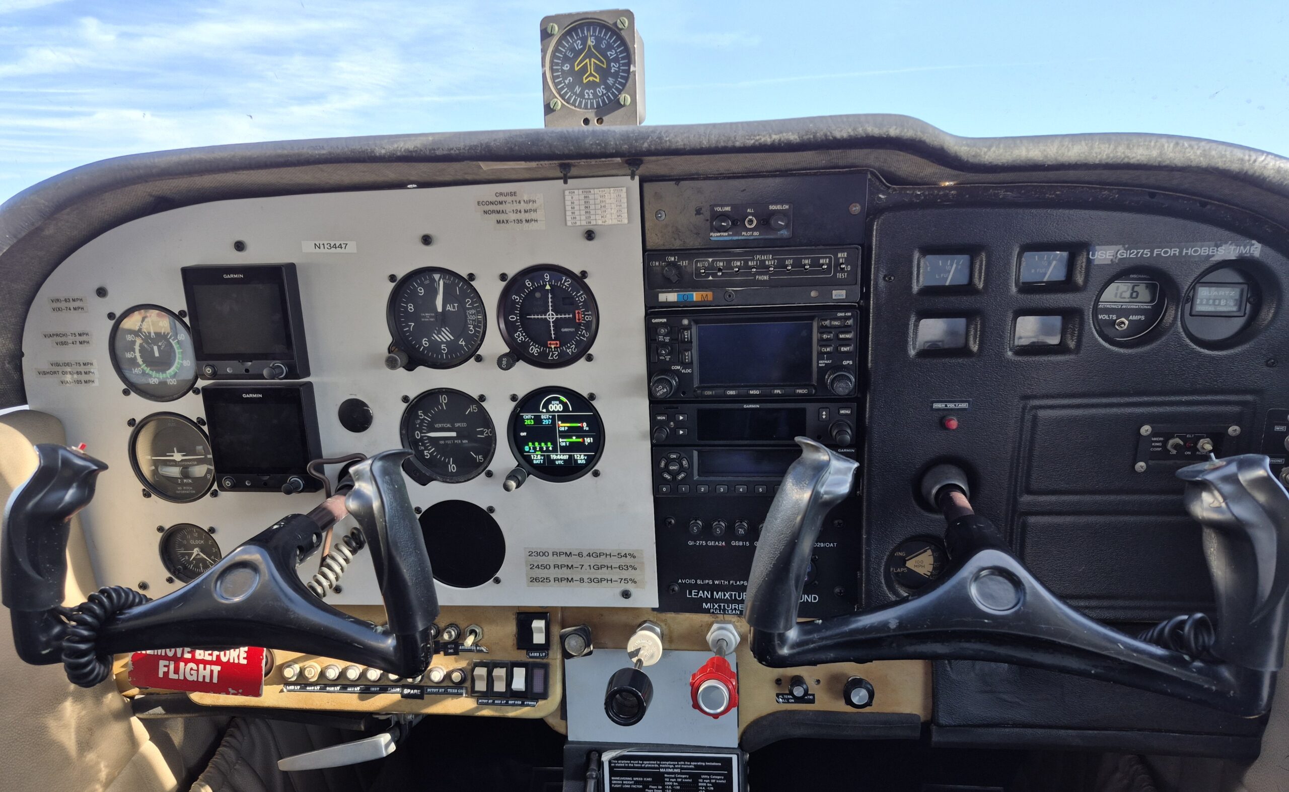 N222BV, “Baby Vic” is a new addition to the primary training fleet featuring modern earth-toned carpet, updated seating, a hybrid classic 6-pack with uAvionix’s dual AV-30C AI/DG, dual CDI, Garmin GNS430 primary NAV/COM, and USB charging ports for your portable toys!